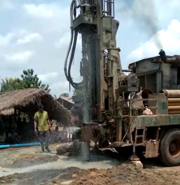 Fin juillet, malgré les pluies qui perturbent le déplacement du camion foreur sur la piste boueuse, le forage est réussi et une pompe manuelle India est installée les jours suivants.