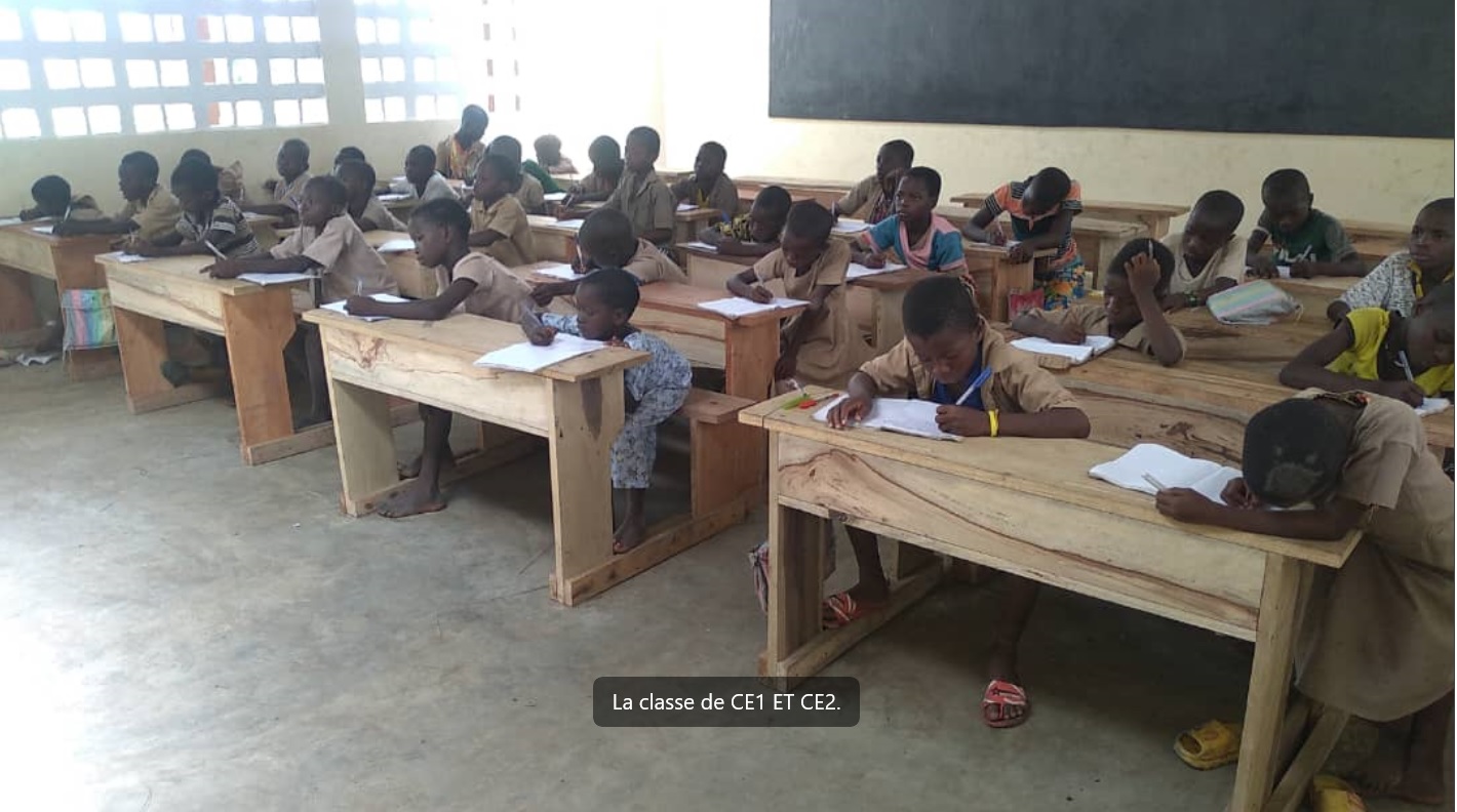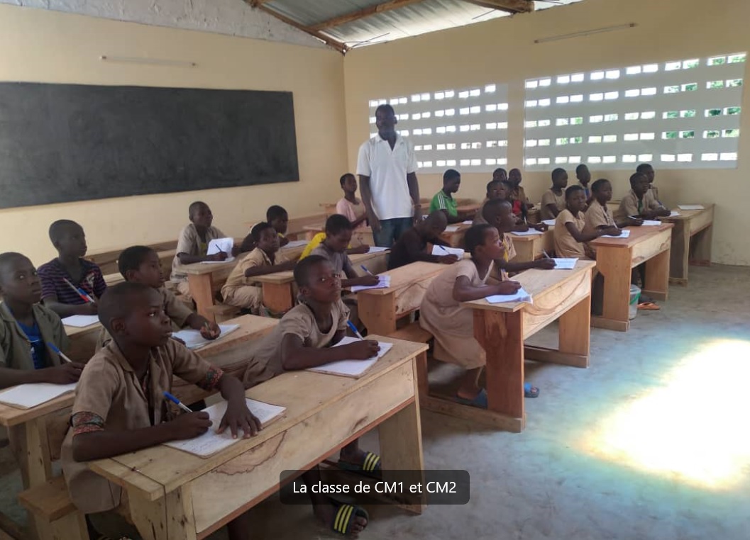 2023 École62 élèves en CP, 64 en CE et 45 en CM. Voilà le nombre d’enfants qui, en 2022 s’entassaient sous des paillotes, les pieds directement sur la terre. Durant les pluies, l’enseignement n’y était donc pas possible.