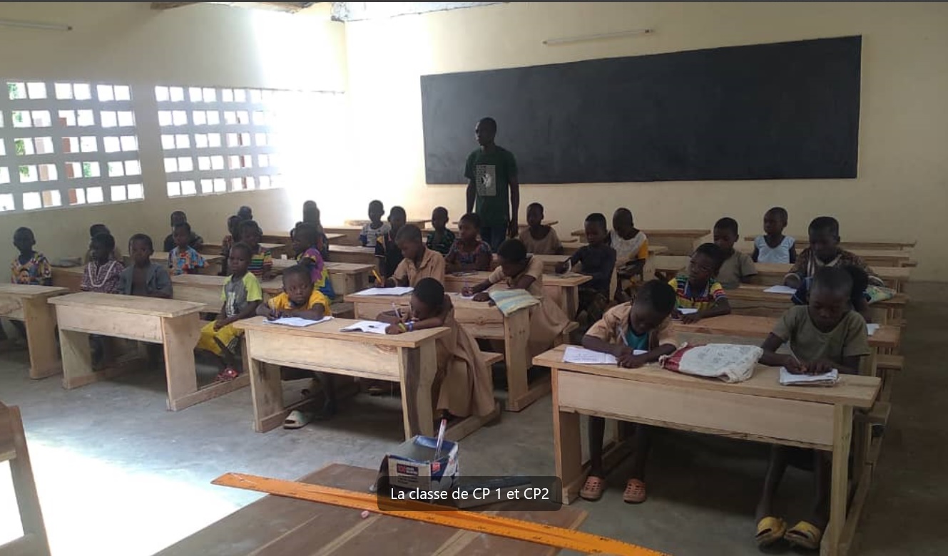 Une centaine de tables-bancs adaptés à l’âge (la taille) des élèves sont venues meubler les classes à fin mars.