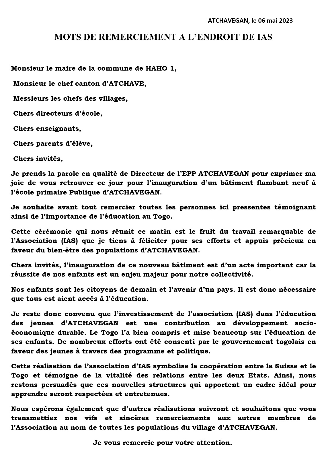Le Service de Solidarité internationale de la République et Canton de Genève a accepté de faire ce don de 45’000 Francs suisses aux enfants d’Atsavegan.