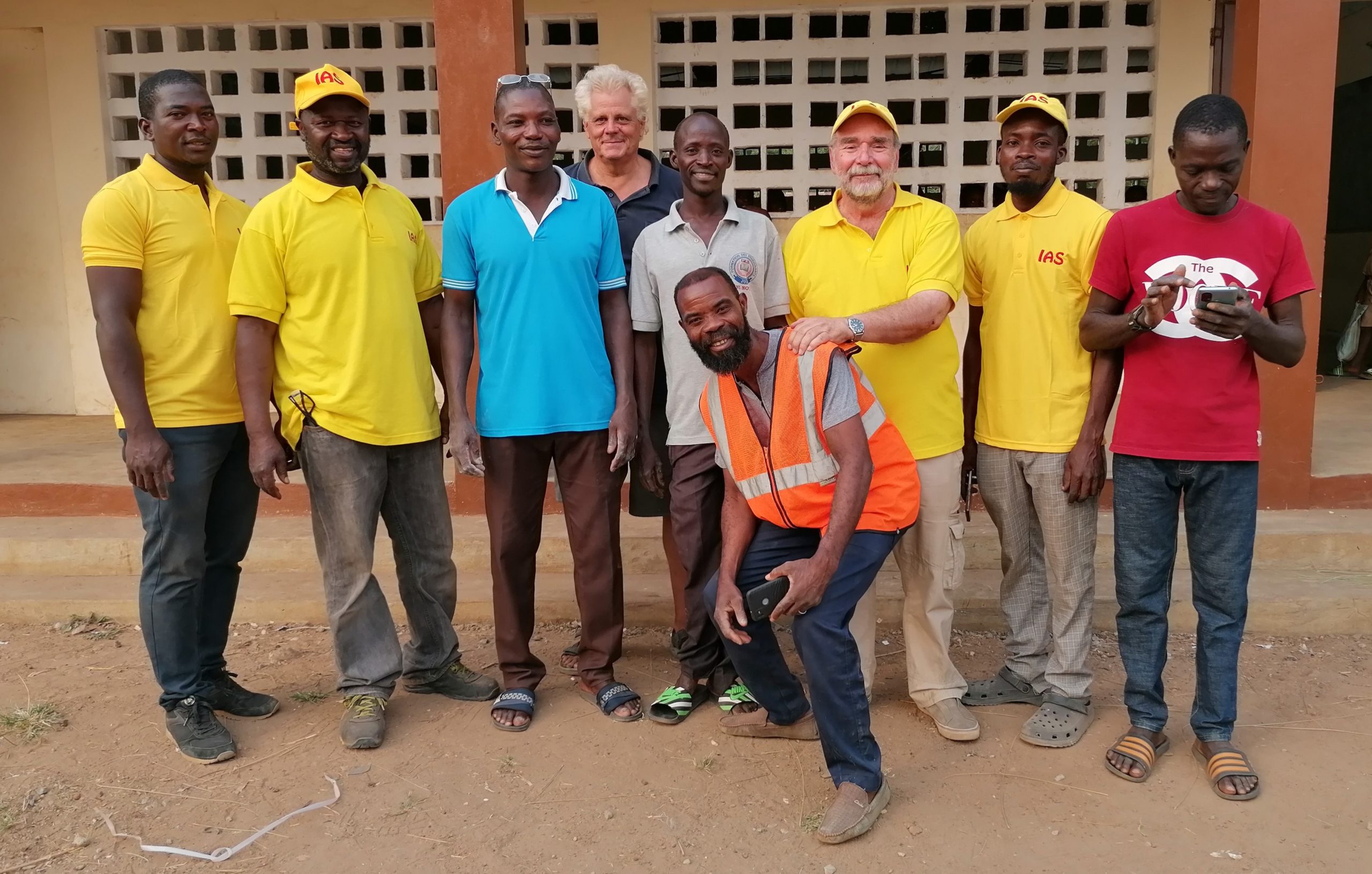 Devant la belle école, l’équipe : Hannasse Abdoulaye, Deignem Korodowou, Mawama Kataka (maître). Thierry Huser, Padibalaki Pesseli (maître), Bernard Béroud, Yaovi Attikle, Tinassé Akparo (sous-directeur), et au premier plan Ablam Ametoesso, soudeur. Manque sur la photo : Clément Aziawoussou.