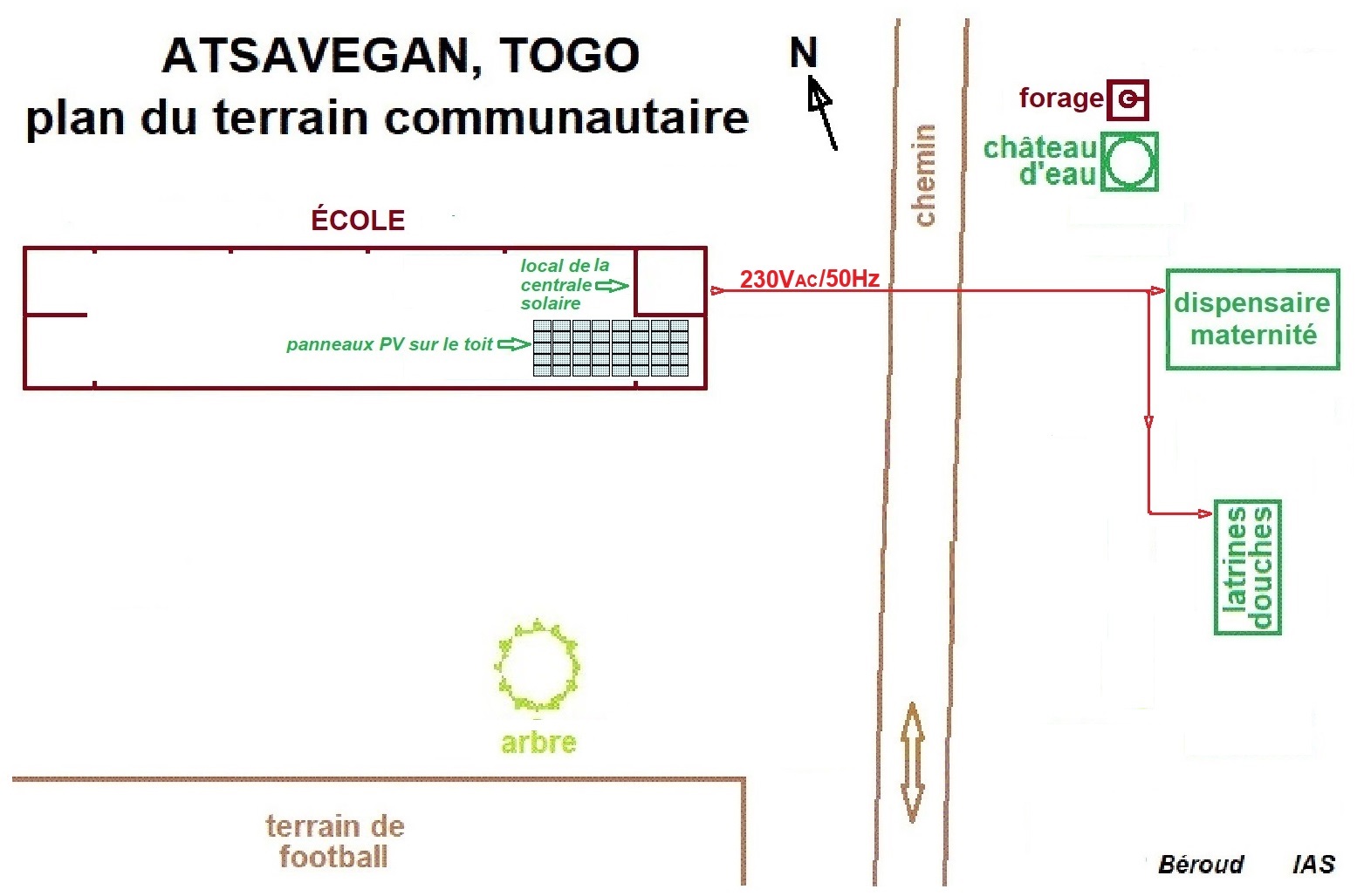 Venant tous de Suisse, Deignem Korodowou, Thierry Huser et Bernard Béroud ont, avec de  fidèles collaborateurs et amis  togolais,  réalisé cet ouvrage qui produit une sinusoïde à 230 Volts (plus pure que le réseau européen) en pleine brousse, pour impulser le développement rural.