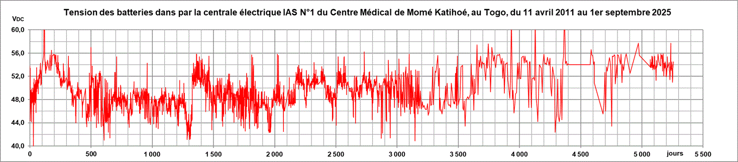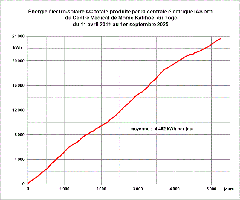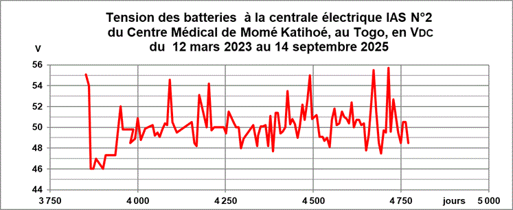 Cette seconde centrale avait, durant les premiers mois une capacité limitée, du fait que 4 accumulateurs des 12 prévus manquaient momentanément dans notre stock au Togo.