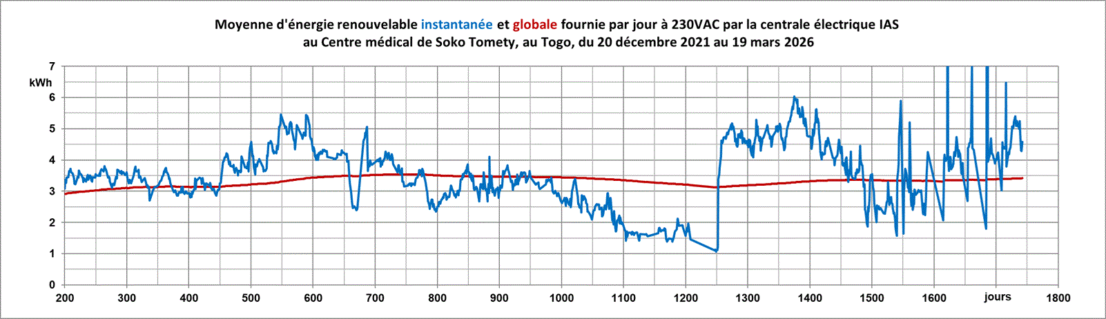 La petite annexe (devant le bâtiment de la maternité) abritant la centrale solaire. Sur le toit les nouveaux panneaux photovoltaïques augmentant la puissance.