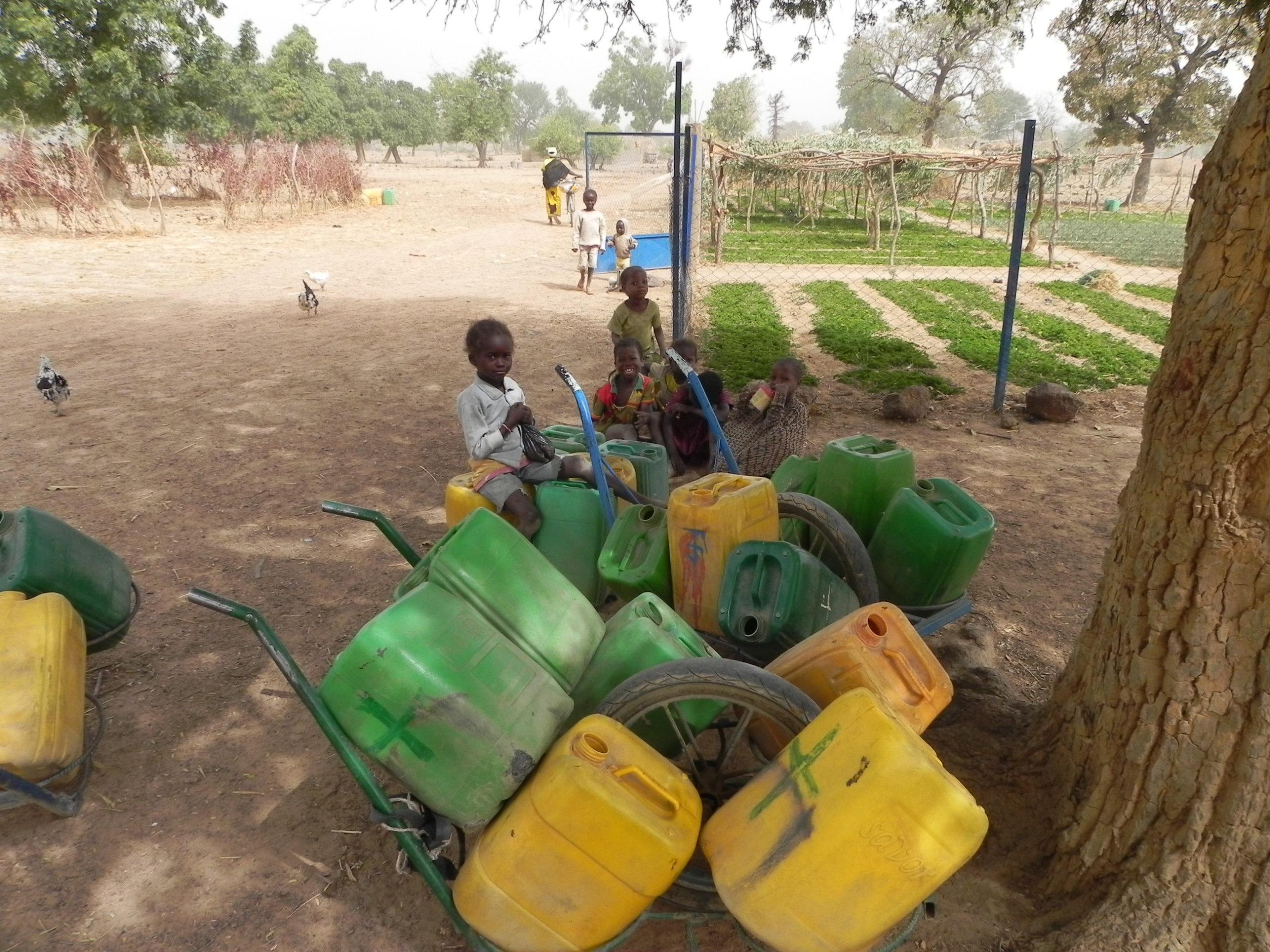 Bien entendu, le but premier d’une adduction électro-solaire est de fournir un minimum d’eau potable quotidiennement à chaque famille. Mais, pour les cultures, les réserves d’eau des puits à ciel ouvert et des bas-fonds s’épuisent progressivement dès décembre, pour être souvent réduites à zéro dès février. Ainsi, l’eau pompée grâce au soleil qui, lui brille plus intensément lors de ces mois de sécheresse, permet d’arroser les maraichages et de produire toute l’année légumes et fruits. Ces productions maraîchères, non seulement amélioreront la nutrition des familles, mais leur procureront également des revenus au marché qui vont initier un développement endogène.